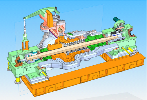 新開(kāi)發(fā)機型通流采用我公司最先進(jìn)高效葉型,機組效率達到國內先進(jìn)水平。汽缸、轉子核心部件采用模塊化設計,高溫、承壓或受力復雜均借助有限元分析手段進(jìn)行受力分析、強度校核,確保結構的合理性、安全性。