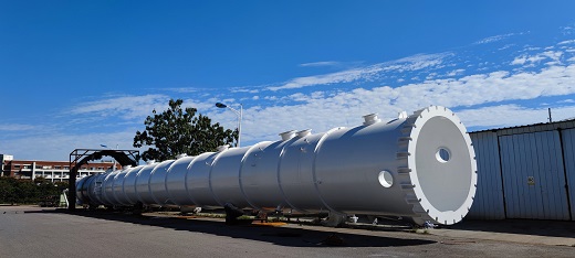 全長(cháng)超過(guò)50米的“巨無(wú)霸”順利產(chǎn)出 捷能高新公司大型塔器換熱器領(lǐng)域制造技術(shù)日臻成熟