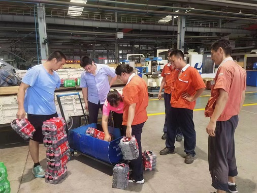 集團公司工會(huì )針對近期的高溫濕熱天氣,調度指揮,采購了近4000瓶可樂(lè )、雪碧及106箱冰糕、40多箱嶗山礦泉水。7月26日,汽車(chē)城管委也送來(lái)了30箱礦泉水,對堅持高溫生產(chǎn)的員工表示慰問(wèn)。